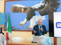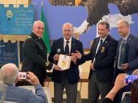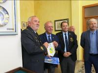 IL LIONS CLUB FILATELICO ITALIANO PRESENTE AL 72° CONGRESSO NAZIONALE LIONS MULTIDISTRETTO 108 ITALY. Il Lions Club Filatelico Italiano, di concerto con il Presidente del Consiglio dei Governatori ed il Presidente del Comitato Organizzatore del Congresso, ha richiesto a Poste Italiane l’annullo speciale celebrativo dell’evento. Il Congresso si è tenuto nelle sale Grecale e Maestrale dei Magazzini del Cotone ed il giorno 18 maggio, alle ore 9,30, alla presenza dei Congressisti, si è proceduto al rito del “primo annullo” che è stato apposto, oltre che dai rappresentanti del Club, dal Presidente del Consiglio dei Governatori, Claudio Sabattini, e dal Presidente del Comitato Organizzatore, Gabriele Sabatosanti Scarpelli, coadiuvati dal personale di Poste Italiane. Al termine, il Presidente Sabattini ha consegnato al Past Presidente Sabato Ruggiero il Melvin Jones che il nostro Club gli ha conferito. Le due cerimonie sono state sottolineate da applausi da parte dei congressisti. Al Presidente Sabattini ed al Presidente Sabatosanti sono stati consegnati i guidoncini del Club. Descrizione allegati: 1. Il rito del “primo annullo” 2. Il Presidente Pipitone illustra le motivazioni del conferimento del Melvin Jones 3. Consegna del Melvin Jones da parte del Presidente Sabattini a Sabato Ruggiero 4. Fronte retro di una delle cartoline approntate con l’annullo speciale |