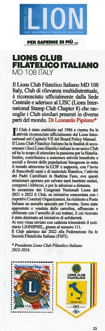 LIONS CLUB FILATELICO ITALIANO - MD 108 ITALY -